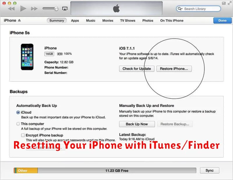 Before you reset your iPhone, it’s crucial to back up your data. This ensures you don’t lose important information like photos, contacts, and app data. There are two primary methods for backing up your iPhone: iCloud and using a computer with Finder (macOS Catalina or later) or iTunes (Windows and earlier macOS versions).